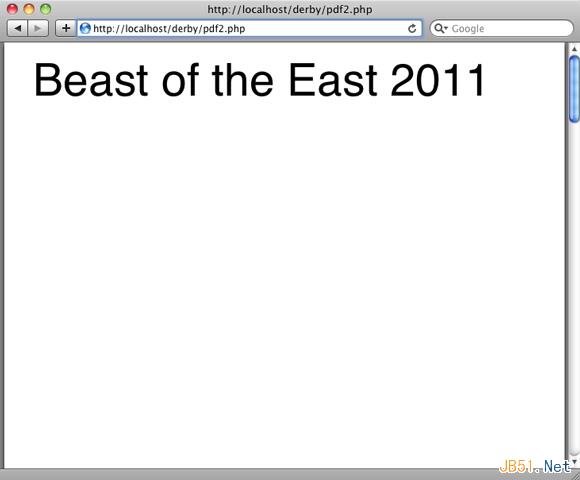 我们没有从外部扩展 FPDF 类别,而是使用我们自己的 PDF 子类来扩展 FPDF 类别。在这些子类内,我们创建了一个名为 EventTable 的新方法,为给定事件构建了一个结果表。在这种情况下,我们从小处着手,只输出了事件名称。该名称位于脚本底部,包装在 foreach 循环中,该脚本为每个事件添加一个页面,然后调用 EventTable 方法。