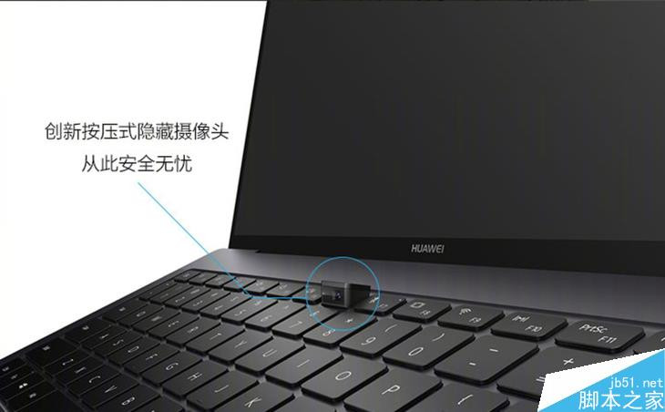 华为MateBook X Pro将摄像头设计成了按压式隐藏的安置方式,位于键盘的F6与F7键之间,这就使得屏幕的上边框能够向更窄再迈进一大步。还有就是不用的时候按下去隐藏起来,任凭手段再高的黑客也不可能通过摄像头窥探到你的隐私了。