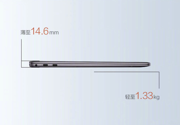 更加轻薄,一直都是旗舰商务笔记本电脑追求的重点。华为MateBook X Pro的机身薄至14.6mm,重量轻至1.33kg,基本与苹果MacBook Pro 13的14.9mm厚、1.37kg重不相上下。