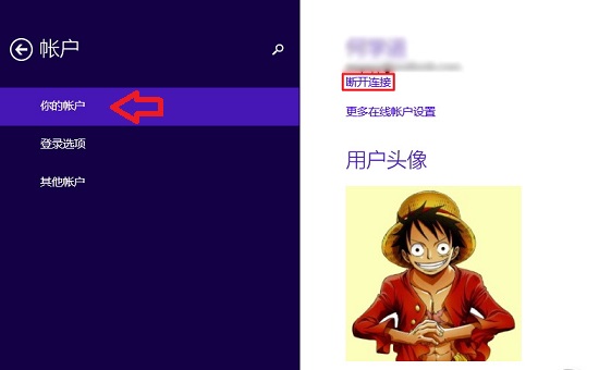 选择断开Microsoft账户