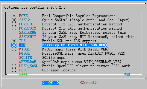 安装时候会同时安装cyrus-sasl2库,选择配置时候选上BDB等..