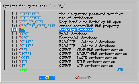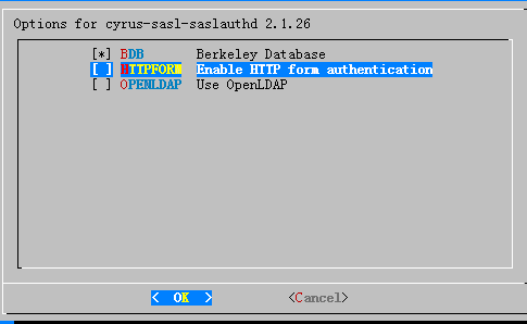 4.安装cyrus-sasl2-saslauthd程序,选择配置时候选上BDB