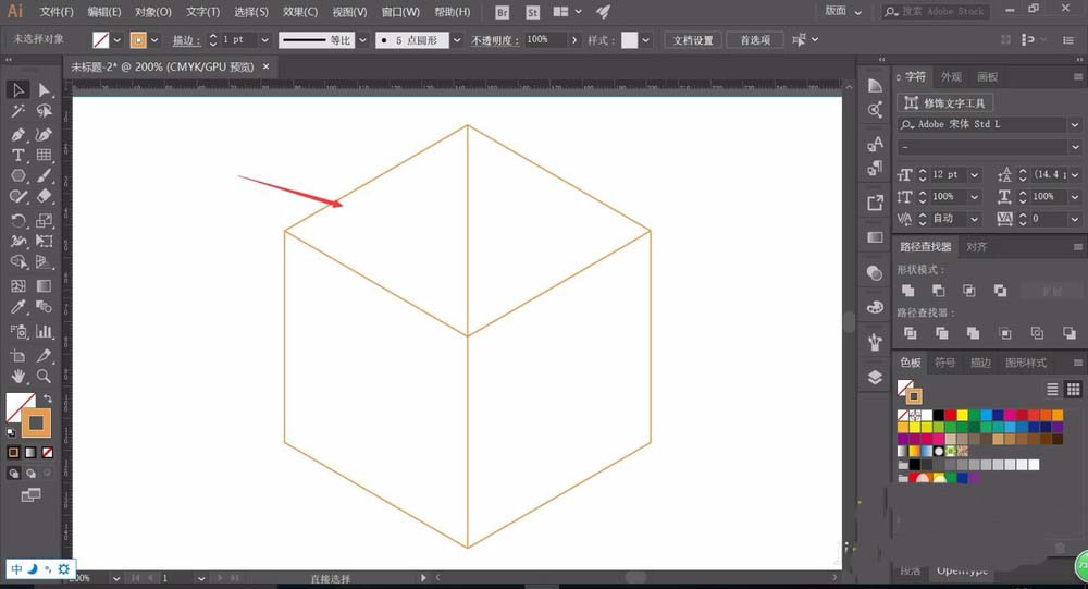 2、等待Adobe illustrator加载完成后,我们就会进入到Adobe illustrator的绘图页面,在工作区中心会有我们新建的空白画布,下面我们开始基础绘制。