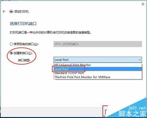 5、选择“创建端口”选中“Local Port”点击“下一步”