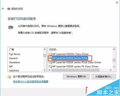 7、根据自己的打印机品牌,找到打印机型号,然后点下一步即可。(注意:第一步安装了支持win10的打印机驱动,所以在这里能找到与打印机型号相符合的驱动程序,没有安装过驱动,里面有可能不会显示打印机驱动)