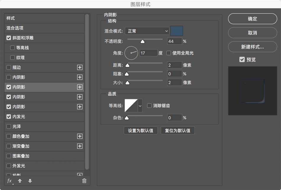 3.接着就是应用各种“图层样式”,这一步在于先确立一个大概的玻璃球体积感。
