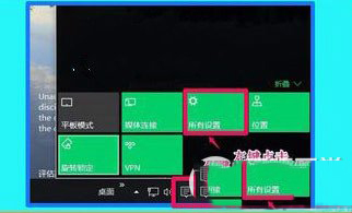 1、左键点击系统桌面右下方的那个通知图标,打开通知窗口之后就点击:所有设置;