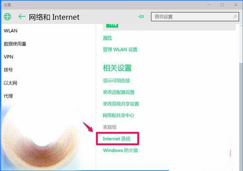 3、网络和Internet设置窗口打开之后,点击:Internet选项,这样就可以打开Internet属性窗口;