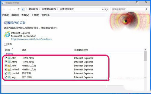 5、在设置程序关联窗口l里面,直接选择要关联的程序,在复选框前面打上勾,之后再后点击“保存”;