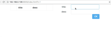 为了逼格更高一点,这里我再介绍一个指令,其实上面已经使用了,v-bind ,这个指令和v-on是类似的,两者的区别在于后面的参数不同,一般v-bind用来传递属性参数,一般使用缩写形式:attr,可以绑定自定义属性,上面代码中我们对Id值的绑定已经使用了v-bind:value="todoItem.id",这里相当于angular中ng-bind。基于对v-bind的了解,我们可以推理,给v-bind添加disable的属性,使OK按钮只有再title不为空的前提下再可用。