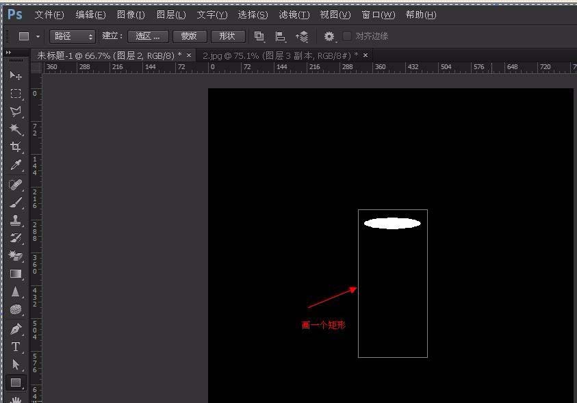 11、将矩形的属性设置为:工具模式:路径。