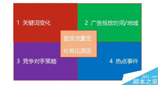 竞争对手对于关键词的匹配方式、出价策略、创意修改和投放时间的调整都会影响流量,例如当我们与竞争对手购买同一关键词时,出价策略往往会决定双方广告的排名,双方的创意会争夺访客的眼球,投放时间等都会展开对流量的争夺;