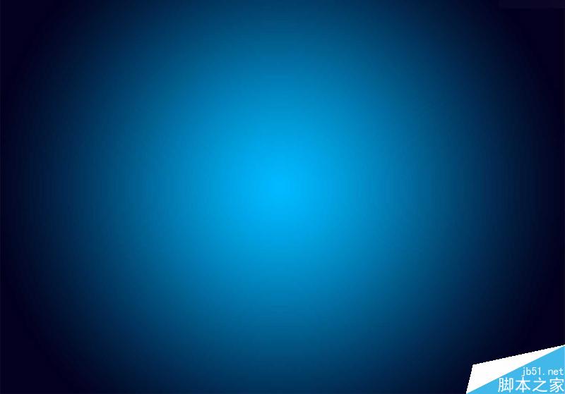 2、 新建图层,命名为背景图层,在背景图层上填充深蓝色(RGB=2/0/28),而后使用渐变工具,设置渐变颜色为亮蓝色(RGB=0/182/250)到透明色的径向渐变,在“图层”画板上设置其混合模式为“线性光”。其效果图如下: