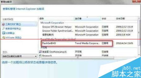 控制面板→网络和Internet→Internet选项→程序→管理加载项,找到FlashGetBHO,查看是否被禁用,如果被禁用,右键点击FlashGetBHO,启动。