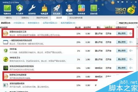 如果Internet选项里没有FlashGetBHO,或者调节后不好使,那么打开360安全卫士或者其他的安全软件,在启动项里面找到屏幕状态条显示工具和联想笔记本电池管理,启动。