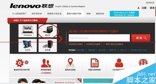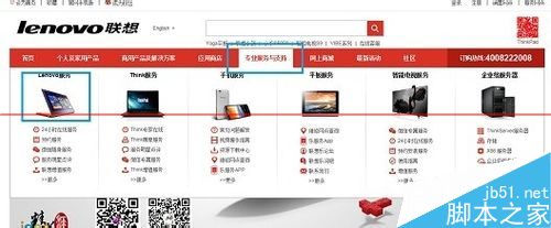 然后打开联想官方网站,点击标题栏中专业服务与支持,然后点击下滑栏中lenovo服务。
