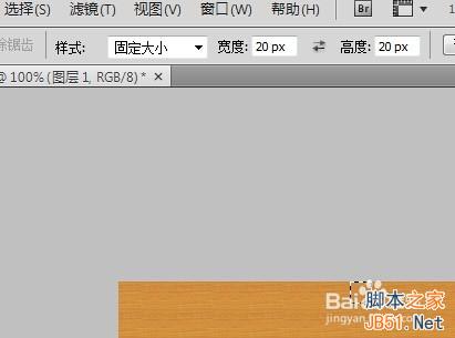 2、木纹制作:给背景层填充颜色,使用油漆桶工具,填充→图案,选项:图案→木质。使用油漆桶工具泼色