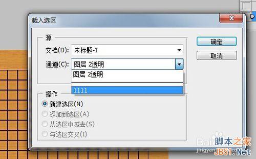 6、载入前面储存的选区1111,内部描边6像素。制作外边框。 选择→修改→收缩选区13像素(因为格子是20像素,要描7像素的边,20-7=13。),内部描边7像素。正好和围棋棋盘重合,制作内边框。