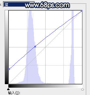7、创建曲线调整图层,对RGB,蓝通道进行调整,参数设置如图20,确定后创建剪切蒙版,效果如图21。这一步同样把图片暗部调暗,并增加蓝色。