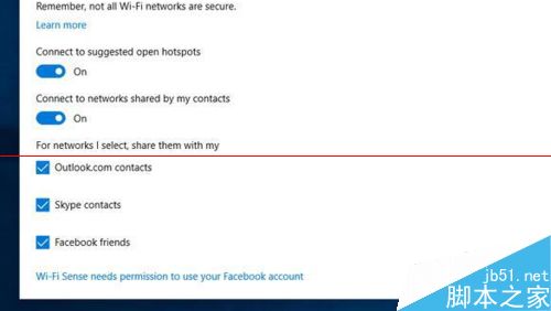 实际上Windows 10最让人诟病的是这一点,微软推行的WiFi感知功能也是“强行”共享WiFi密码,并且默认设置中还有众所周知垃圾邮件占多数的Outlook联系人。要关闭WiFi感知,点击开始-设置-网络和Internet-WLAN-管理WiFi设置,关闭这些功能即可。