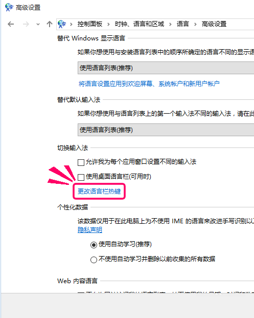 你也可以通过下面的方法进入更改语言来热键选项