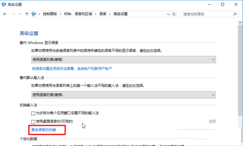5、点击更改语言栏热键