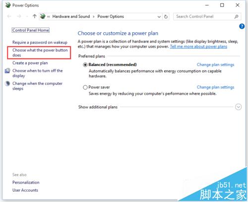 1、在小娜里输入power options打开电源选项