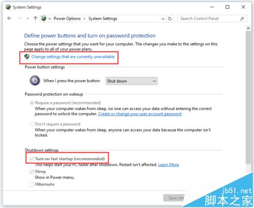3、点击“更改当前不可用的设置”