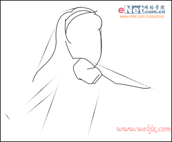 用钢笔工具由上至下先勾出诗织的头部与肩膀
