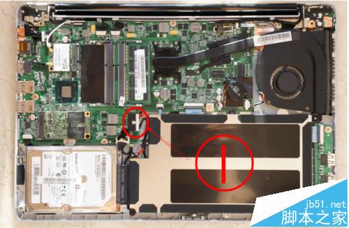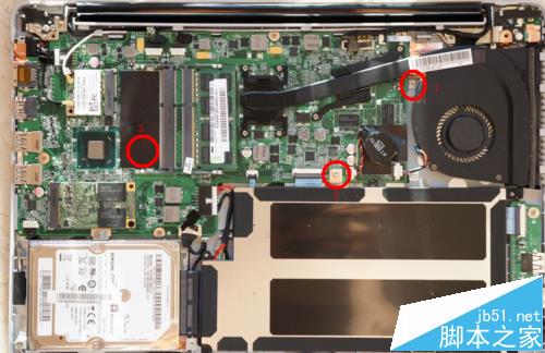 1、拧下三颗螺丝即可取下底盖。联想U410采用的隐藏螺丝设计,在底盖上看不到任何螺丝,在拆解时需要扣开底盖上的胶垫才能看到螺丝。U410拆解比较方便,在底盖上,只有3颗螺丝(其中一个胶垫下没有螺丝),在拧下螺丝后,用撬片即可撬开底盖,然后它的内部空间就一览无遗了。