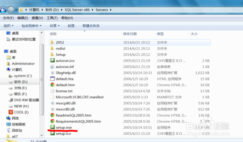 4.找到你的SqlServer2005文件夹,双击setup.exe;