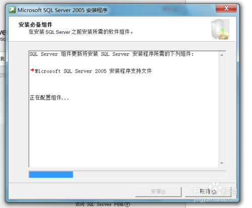 7.系统自动配置组件,好了以后点击安装;到此,安装SqlServer2005的前期工作就全部完成了。
