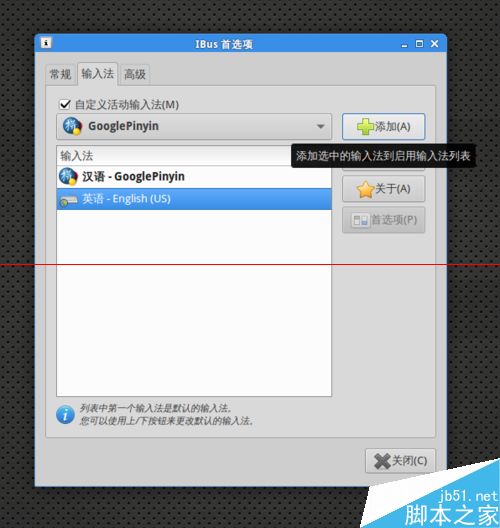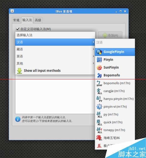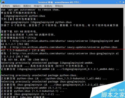 1、用终端模拟器复制以下命令安装google拼音输入法: $sudo apt-get install ibus-googlepinyin