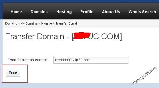 3:如图填写对方的邮箱,点击Send就ok啦,然后域名就会在这个列表消失了。