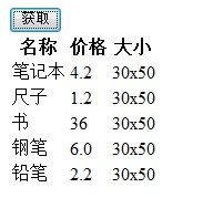 点击获取按钮后,将请求页面,获取json数据,填充到表格