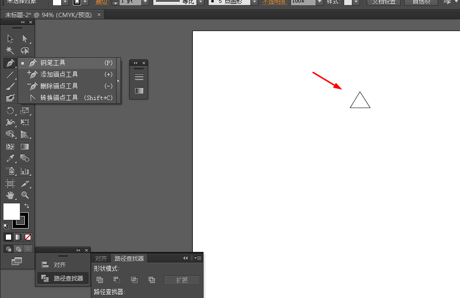 1、在Ai软件中,新建一个800*800的文档,选择钢笔工具,勾出一个三角形,如图所示
