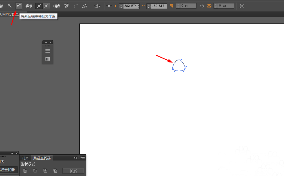 2、然后选择直接选择工具,把三角形的锚点改为平滑锚点,如图所示