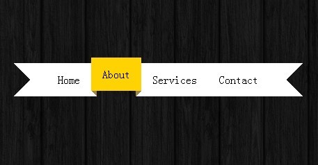 CSS3立体飘带状菜单,该菜单鼠标滑过时,菜单项向上立体凸起,结合黑色的木质背景,整个菜单显得非常立体生动。