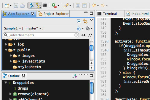 AptanaStudio 是一款开源的Web集成开发环境,支持Ajax Web应用。它是基于Eclipse,可用于开发JavaScript,HTML,对DOM和CSS有自动提示功能,能够给出代码大纲,可用于JavaScript调试,有集成文档。