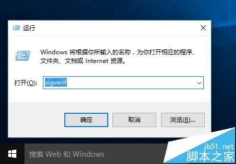 1、首先,按下快捷键Win+R,在弹出的运行窗口中输入sigverif,再点击“确定”。