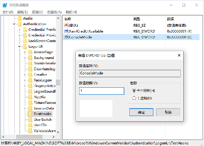 要想恢复为默认的锁屏和登录界面,只需把ConsoleMode删除或把值改为0。