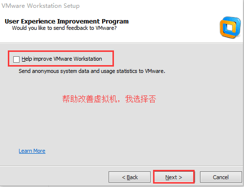 帮助改善虚拟机,我选择否,点击“Next”::