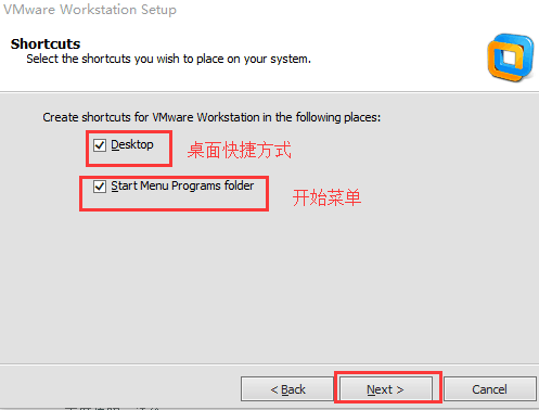 勾选桌面快捷方式和开始菜单,,点击“Next”: