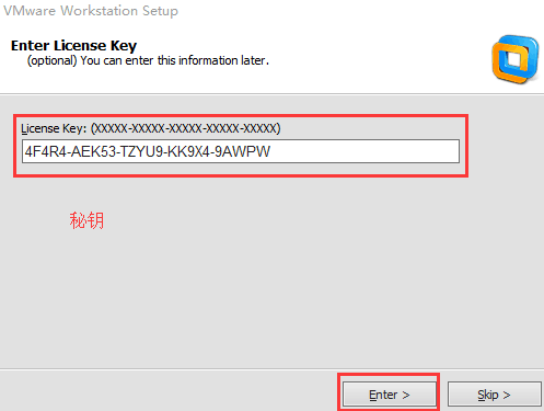 输入秘钥,点击Enter: