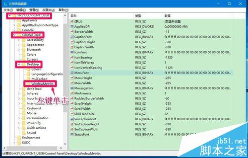 注册表路径:HKEY_CURRENT_USER\Control Panel\Desktop\WindowMetrics