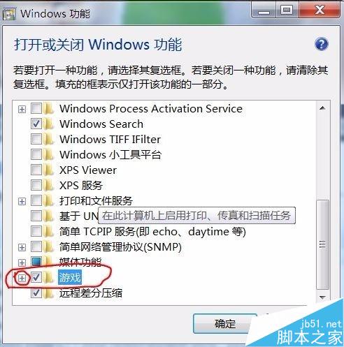 4、如果你只想去掉一部分游戏,那可以点开"游戏"左侧的"+",然后把不需要的游戏前面的勾去掉,然后点击确定。