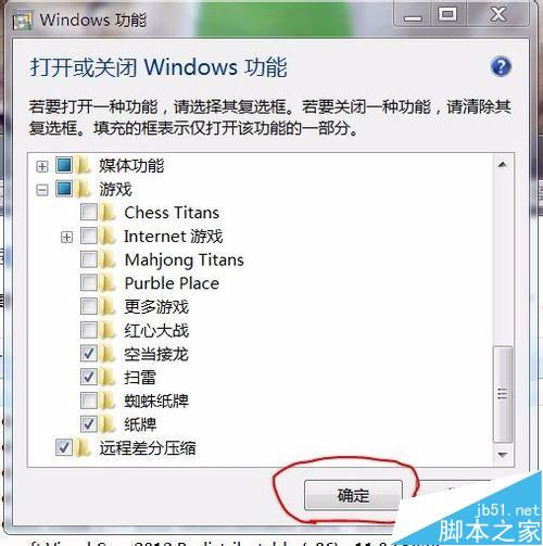 注意事项:删除后如果想恢复某个游戏,同样的只要打开Windows功能,给需要恢复的游戏前面打上勾就行了。