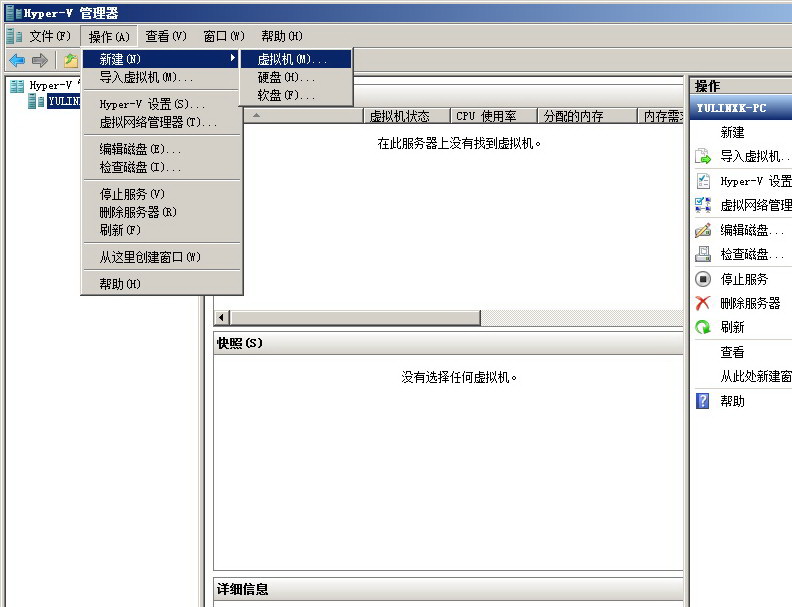 控制面板=》管理工具=》打开Hyper-V 管理器=》菜单 =》操作=》新建=》虚拟机...