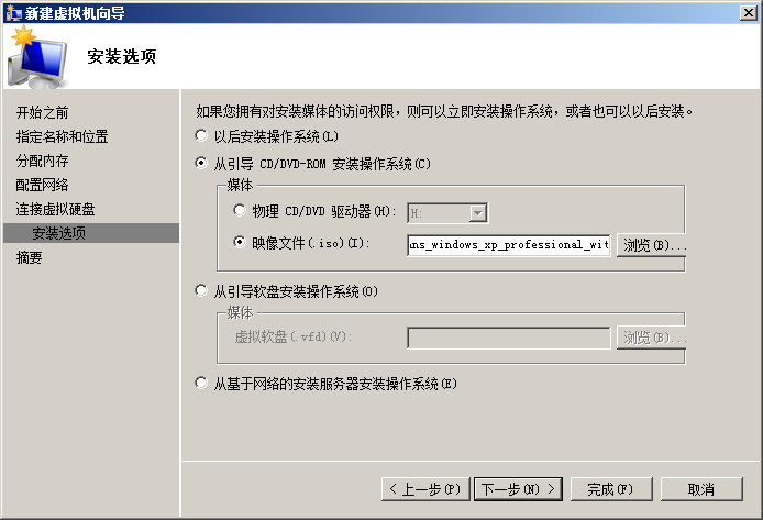 这里选择安装镜像ISO文件,安装什么系统就选择什么镜像。点击下一步。