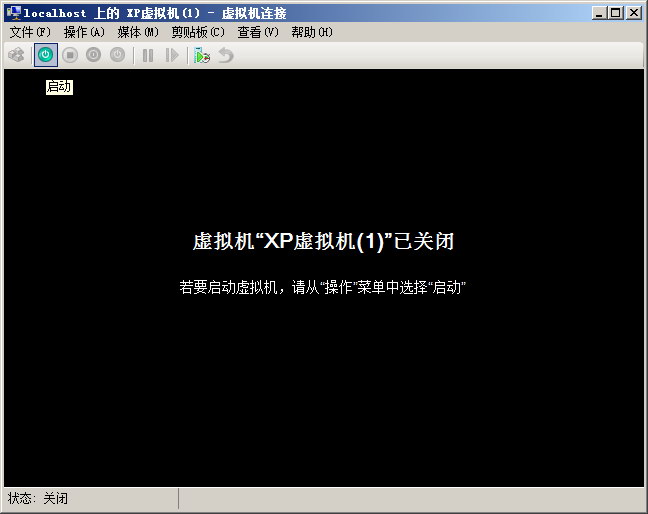 会弹出一个类黑色的虚拟机窗口,这时,要开启虚拟机,可以按屏幕提示,或者直接按“文件”下方的“开机”按钮,然后开启你的Hyper-V之旅吧